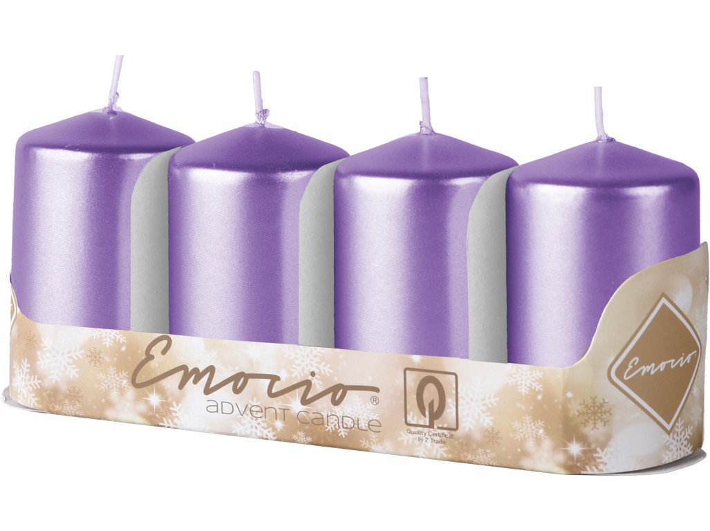 Emocio Valec 4ks 40x80mm Metal fialové sviečky