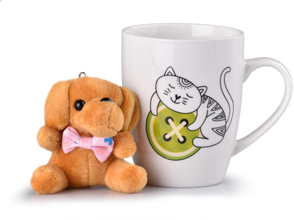 Hrnček keramika 360 ml mačka s plyšákom