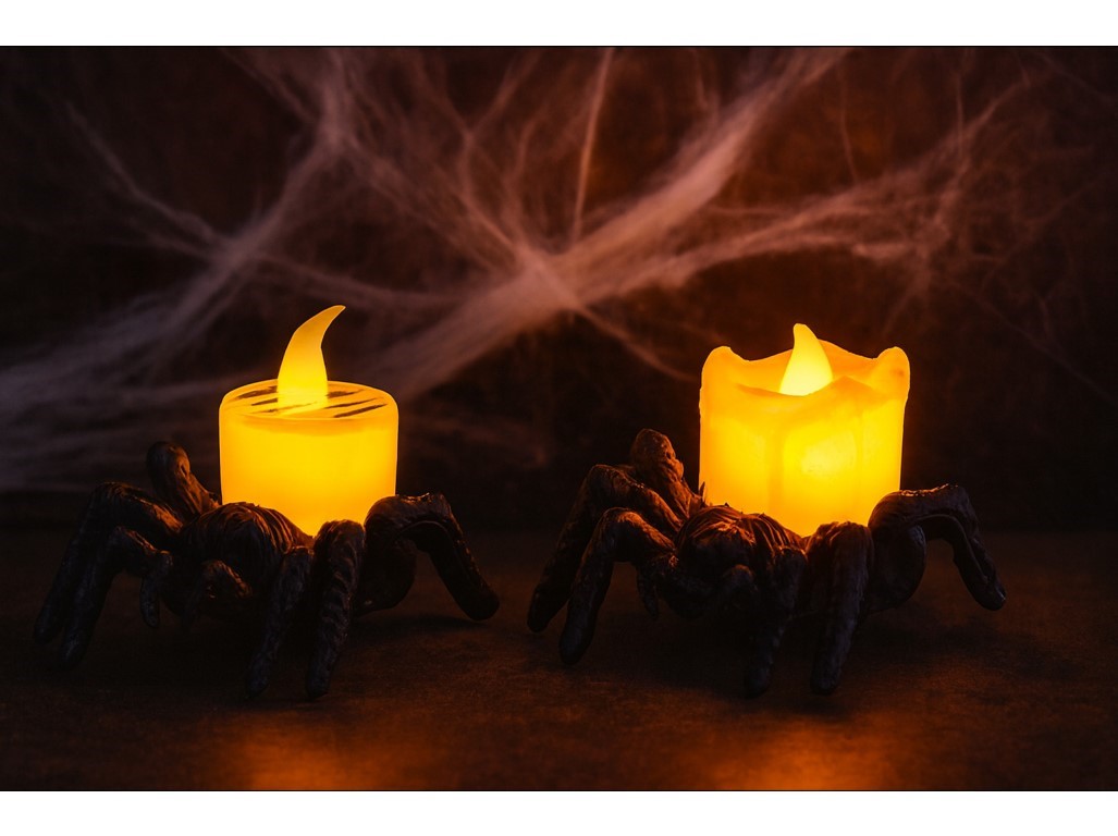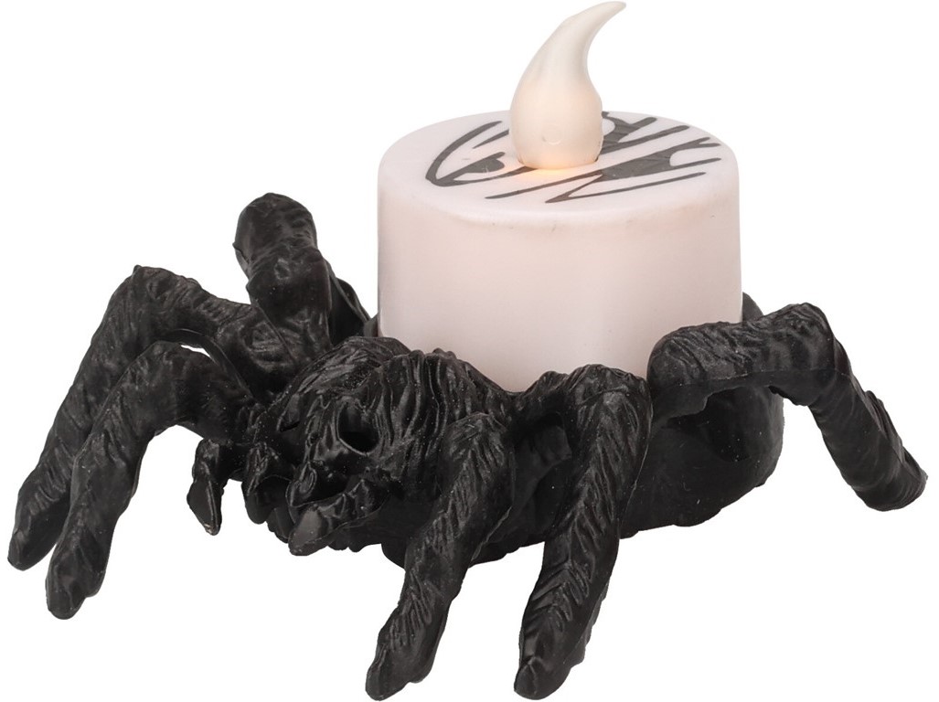 Vtipná LED dekorácia v tvare pavúka, ktorý drží imitáciu čajovej sviečky. Blikajúce svetlo vytvorí zábavný efekt na halloweensky večer. Pre deti aj dospelých - bezpečná alternatíva skutočných sviečok.