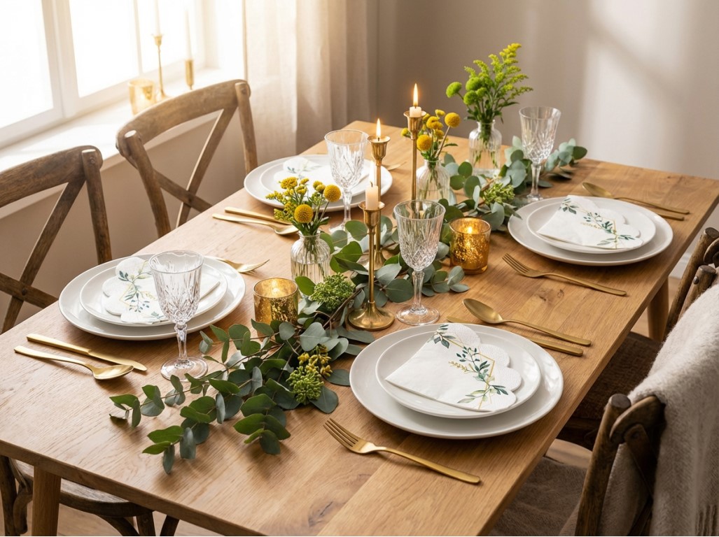Elegantné obrúsky Leaves frame s jemným dekorom listov dodajú vášmu stolovaniu prirodzenú eleganciu. Balenie obsahuje 12 servítok s priemerom 32 cm, ideálnych na rôzne typy stolov. Vyrobené z kvalitného materiálu, ktorý je pevný, savý a zároveň príjemný na dotyk. Tieto servítky sú skvelou voľbou na slávnostné príležitosti, záhradnú párty alebo štýlové rodinné večere.