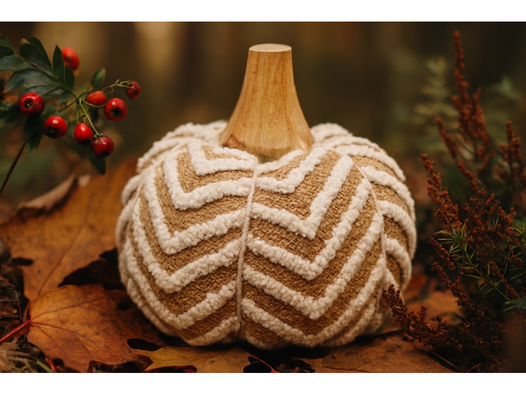 Ručný vzhľad, hebká bavlna, tlmené tóny bielej a hnedej – tieto pletené tekvice sú štýlovou alternatívou ku klasickej keramike. Skvele vyzerajú spolu aj v skupine s prírodnými materiálmi.