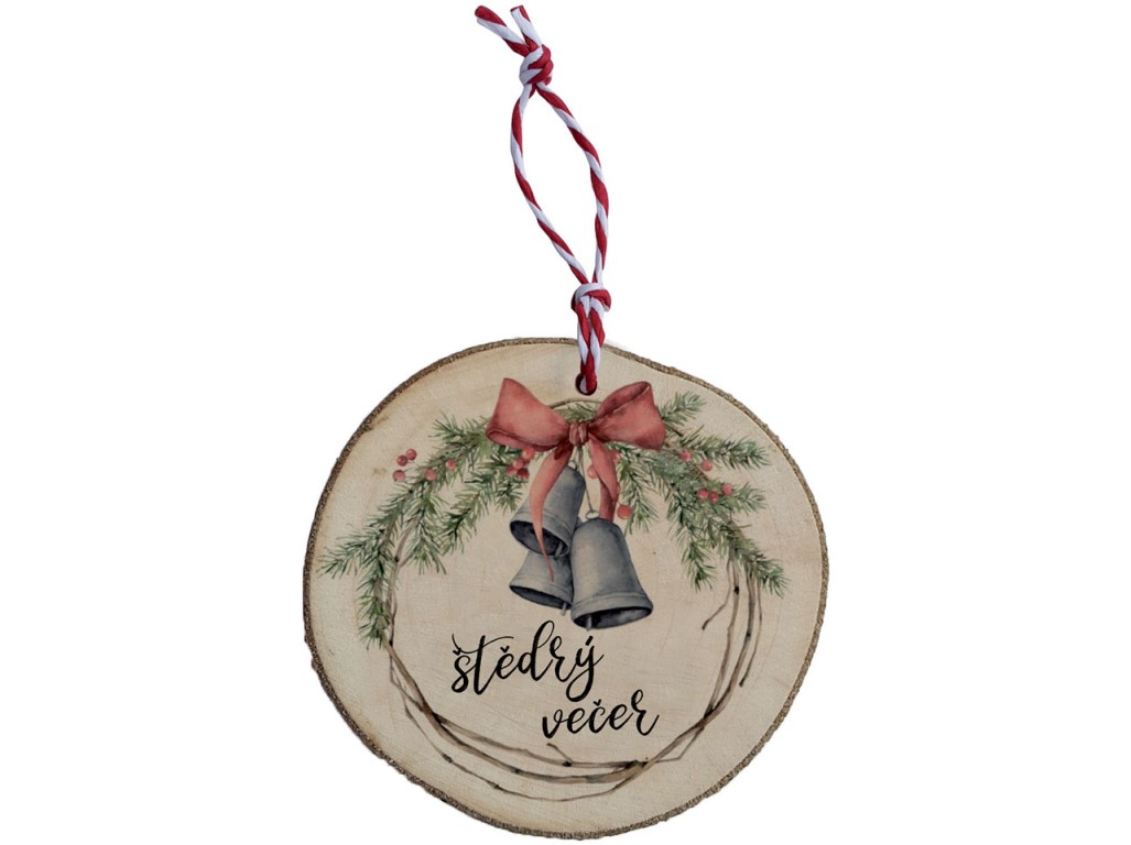 SK Závesná drevená vianočná ozdoba 60 mm - Štedrý večer