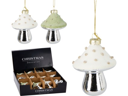 Ručne dekorované sklenené muchotrávky navodia nostalgickú atmosféru lesných Vianoc. Ľahké fúkané sklo, kovové očko na ľahké zavesenie.