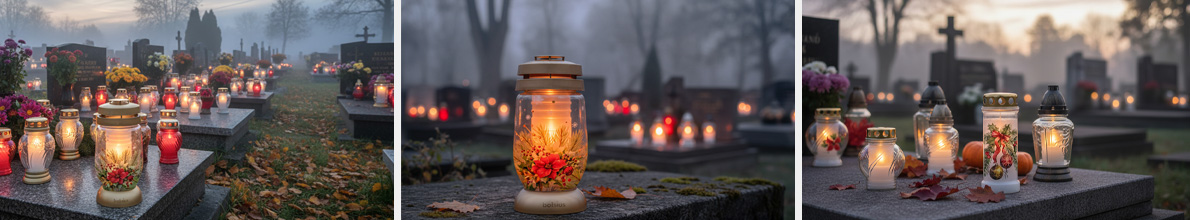 Veriaci i ateisti navštevujú rodinné hroby a vo vyzdobených kostoloch a kapličkách sa slúžia sväté omše. Na hroboch a doma se zapaľujú sviečky, ktoré predstavujú náš prejav lásky a úcty a symbolizujú nezhasínajúcu vzpomienku na blízkych zomrelých . V našej ponuke nájdete klasické náhrobné a iluminačné sviečky najvyššej kvality i stále obľúbenejšie cintorínske sklené kahance s dlho horiacimi náhradnými náplňami. Pre interiér odporúčame použiť kostolné sviece.