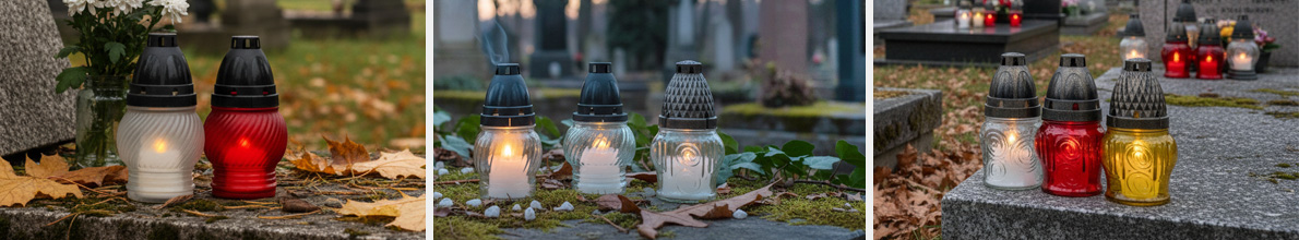 Cintorínske sklo je tradičným a elegantným doplnkom hrobov. Slúžia ako držiaky na sviečky a vytvárajú dôstojné miesto na spomienku na zosnulých.