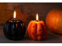 Plná parafínová sviečka v klasickom tekvicovom tvare. Zapálený knôt vytvára hrejivé svetlo na večery na terase aj doma. Vynikne samostatne alebo spolu s väčšími dekoračnými tekvicami.