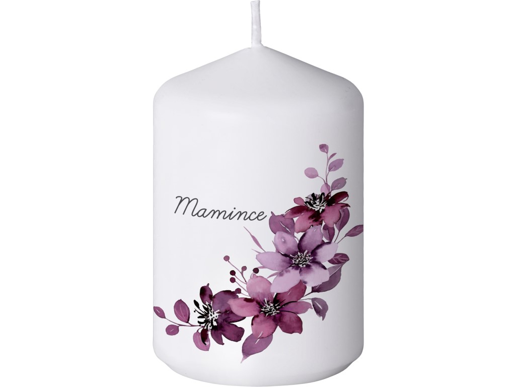 Sviečka valec s motívom Mamičke - fialový kvet 50x90 mm
