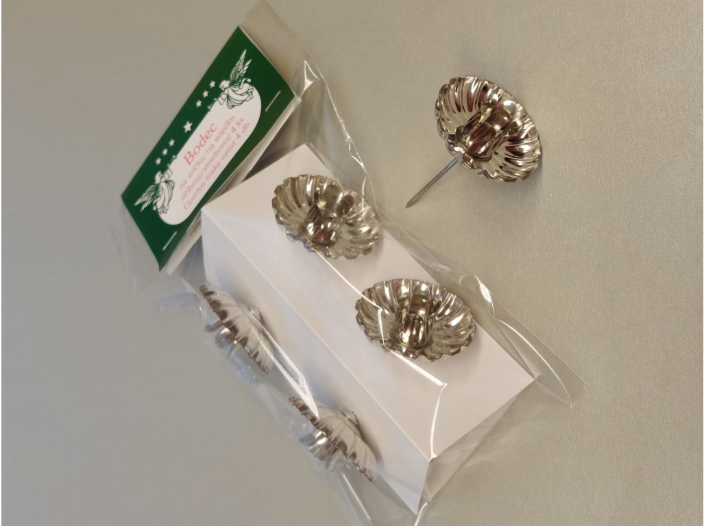 Svietnik kov 4x40mm na stromček. sviečku ozdobný so zápichom strieborný