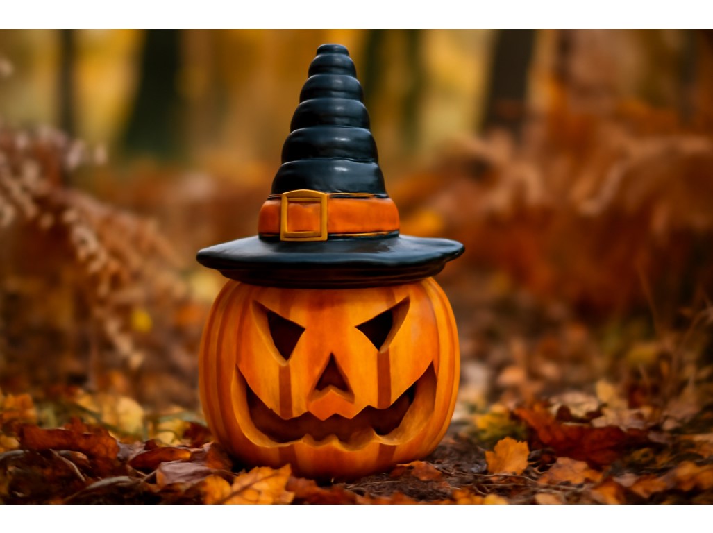 Veselá keramická tekvica s klobúkom - svietnik s halloweenskym nádychom.
