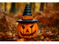Oranžová keramická tekvica s čiernym klobúkom je ideálnym doplnkom na jesennú a halloweensku výzdobu. Otvorená zadná strana umožňuje vložiť čajovú sviečku, ktorá tekvicu krásne rozsvieti. Skvele vyzerá samostatne aj v kombinácii s ďalšími dekoráciami.