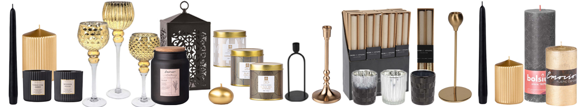 Dizajnový domov alebo štýlová oslava, doplnky v elegantnej čiernej a slávnostnej zlatej farbe, vonné sviečky a nadčasové lampáše. To všetko vnesie do vášho domova útulnú a jedinečnú atmosféru.