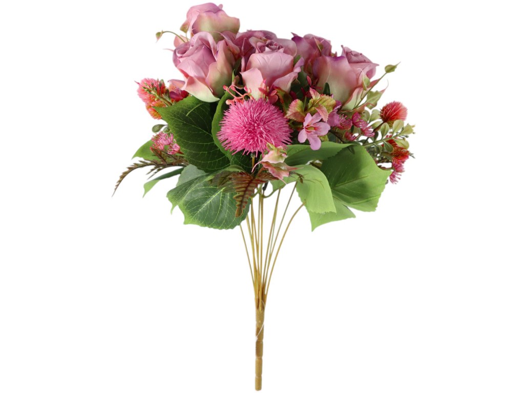 Umelé kvety, plast 460mm ruža a cesnak puget, mix farieb