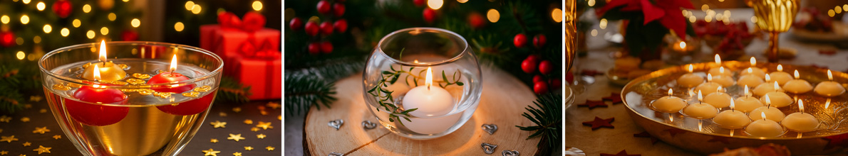 Plávajúce sviečky sú nádherným symbolom Vianoc. Umiestnite ich do nádoby s vodou a sledujte, ako sa sviečky vznášajú každá svojím vlastným spôsobom.