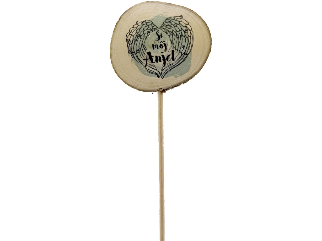 Vyjadrite svoje city originálnym dreveným zápichom „si môj anjel“. Ideálna ako doplnok ku kvetine či darček pre niekoho, na kom vám naozaj záleží. Priemer kolieska je 5 – 8 cm, výška zapichovátka je približne 30 cm.